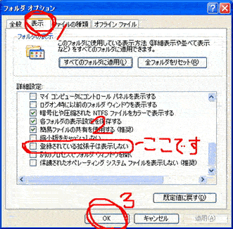そして、表示ボタンを押して、一番下から3つ目の「登録されている拡張子は表示しない」